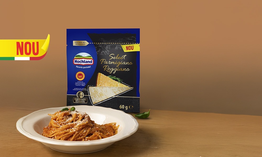 Încearcă gustul autentic italian al Select Parmigiano Reggiano! Ambalaj practic, cu sistem de deschidere-închidere, păstrează savoarea produsului.